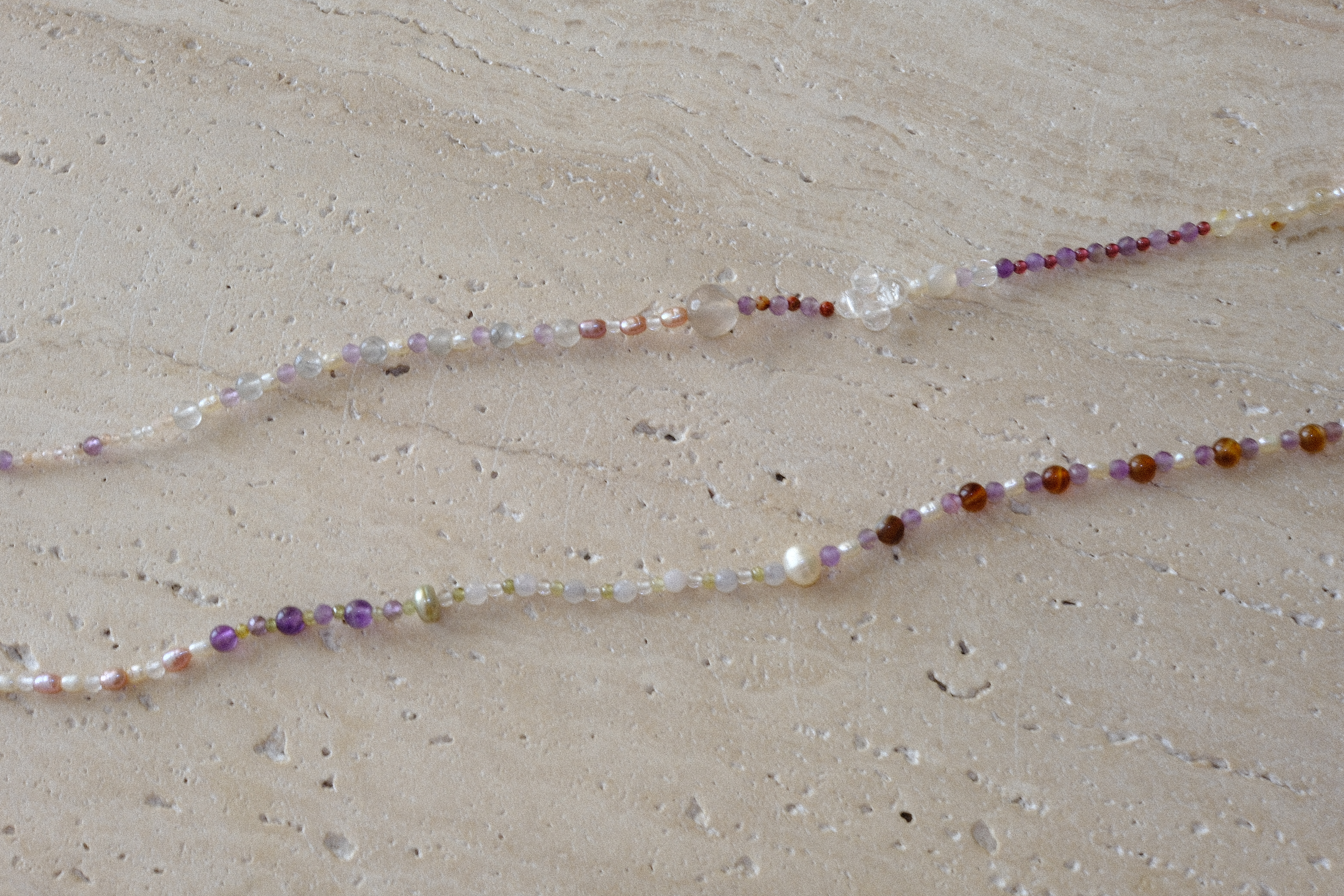 - dark gray quartz, light citron quartz, amethyst, light gray agate, gray agate, natural agate, brown agate, rock crystal quartz, natural garnet, green garnet, red rainbow jasper, pink aventurine, moonstone, white freshwater pearl, black freshwater pearl, green freshwater pearl, purple freshwater pearl, pink rice pearl, purple rice pearl, white rice pearl.